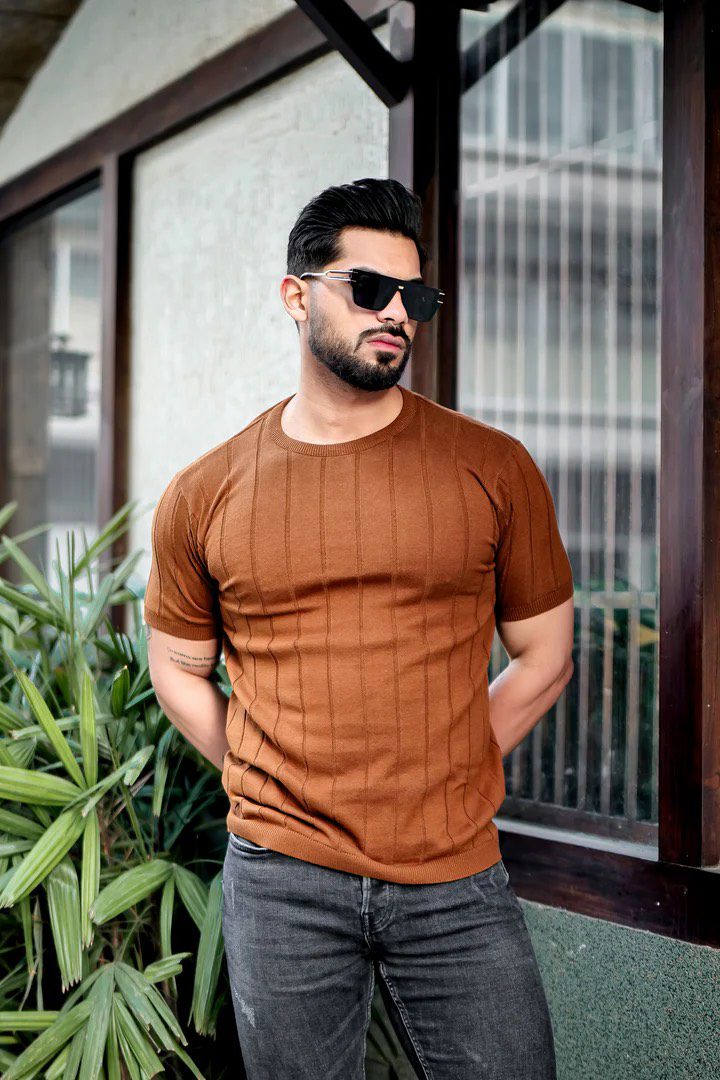 Brown Premimum Flat Knit Round Neck T-Shirt
